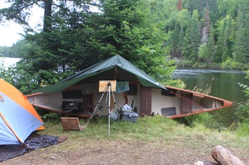 En Plein Air painting can be the best and worst of painting experiences. One spring it seemed I had rain almost every day in the field. So, I had quite a few rainy day paintings and no it wasn’t because I was depreseed. This is how I managed to paint on rainy days. I had a small tarp pulled over my canoe. Wasn’t wonderful, but I made the best of it. One of my favourite paintings of the project was actually done from this exact spot with this set up.