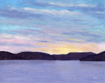 Sunset Grand Lake on Wood Panel